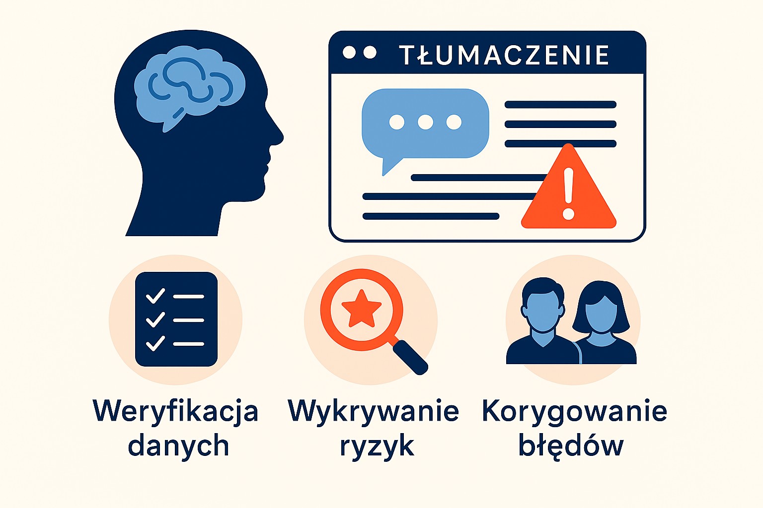 Czasem tłumaczenie maszynowe tworzy płynny, przekonujący tekst, który… jest całkowicie nieprawdziwy. Takie „halucynacje” AI potrafią wymyślać nazwy produktów, przekręcać fakty lub zmyślać liczby, szczególnie w tłumaczeniach prawniczych, medycznych czy technicznych.